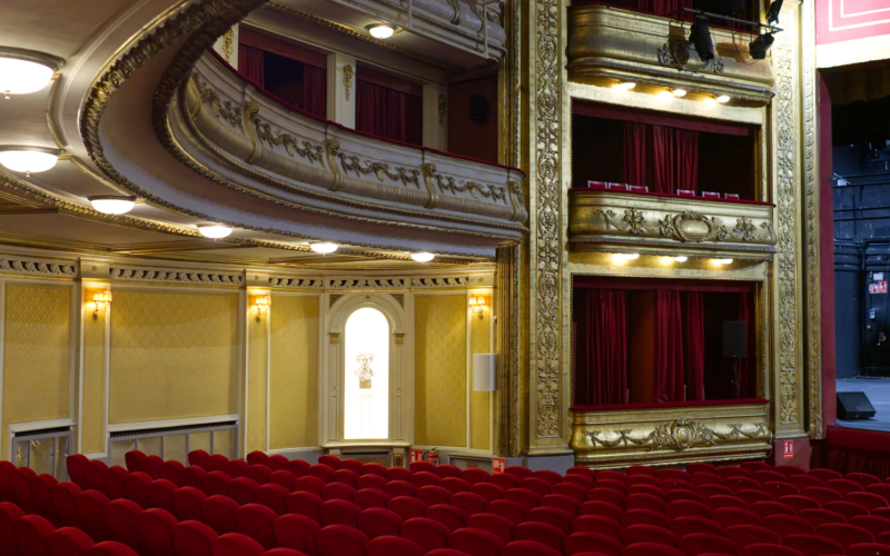 The venue’s interior comprises four floors with the first housing the entrance hall and the auditorium itself, with the stage and orchestra pit along with seating for 438. Central stalls on the second-floor seat 980 audience members, with a third-floor balcony for 218 and a further fourth floor ‘amphitheatre’ seating 118.
