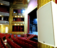 The full system at Teatro Gayarre comprises 2 x NEXO ePS12s as L + R for the main floor, 2 x ePS10 as reinforcement for the main floor, 4 x compact NEXO ID24s as front-fills mounted in front of the stage on custom brackets and 6 x NEXO eLS18 subs on the floor in front of the stage, in cardioid configuration.