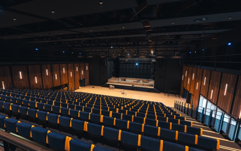 Replacing the city’s old festival hall, demolished as part of a wider redevelopment of the area, the main hall at the new venue has a seating capacity of 600 and can accommodate up to 2.5 times that number standing. It features acoustics designed for artistic performances and modular spaces, enabling it to adapt easily to the needs of each event.